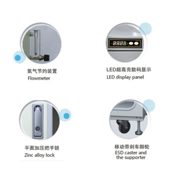 西箭品牌氮?dú)夤窆耋w采用不銹鋼或者鋼板柜體制作(可選擇),柜體多處加強(qiáng)結(jié)構(gòu),承重性能好,重疊式結(jié)構(gòu)設(shè)計(jì),密封性能好。防靜電型氮?dú)夤癖砻嫣幚聿捎梅漓o電烤漆,靜電阻值約為106-108歐姆,漆面噴途紋路美觀大方,耐腐蝕性較好,柜門可選擇圓型柜門或者方型柜止,中間嵌入高強(qiáng)度鋼化玻璃。門把手采用平面加壓把手鎖一體化設(shè)計(jì),有防盜功能并可選裝智能密碼鎖裝置,底座配可移動(dòng)帶剎車腳輪方便移動(dòng)及固定,防靜電型氮?dú)夤衲_輪為防靜電腳輪。西箭系列智能氮?dú)夤袢蹬鋫涞獨(dú)夤?jié)約裝置,采用多點(diǎn)供氣系統(tǒng)。氮?dú)馔ㄟ^30多個(gè)小孔沖入箱內(nèi),箱內(nèi)氮?dú)夥植急容^均勻。當(dāng)箱內(nèi)濕度到達(dá)設(shè)定值時(shí),氮?dú)饪叵到y(tǒng)會自動(dòng)切斷氮?dú)夤?yīng),當(dāng)超過設(shè)定值時(shí),系統(tǒng)會智能打開氮?dú)夤?yīng),起到一個(gè)智能控制節(jié)約氮?dú)獾淖饔?,降低使用成本?/span>